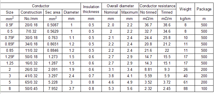 | Conductor:Annealed or tinned stranded copper | ||||||